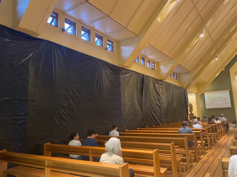 Por qué hay un nylon negro en el templo parroquial